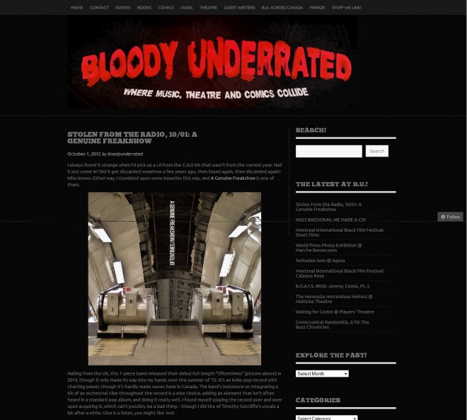 Entertainment blog, Bloody Underrated, recently reviewed A Genuine Freakshow’s album Oftentimes. The blog commented on the band’s unique use of orchestral elements saying that “The band’s insistence on integrating a bit of an orchestral vibe throughout the record is a wise choice, adding an element that isn’t often heard in a standard pop album, and doing it really well.” Bloody Underrated even says “I found myself playing the record over and over upon acquiring it, which can’t possibly be a bad thing” It certainly is not a bad thing.