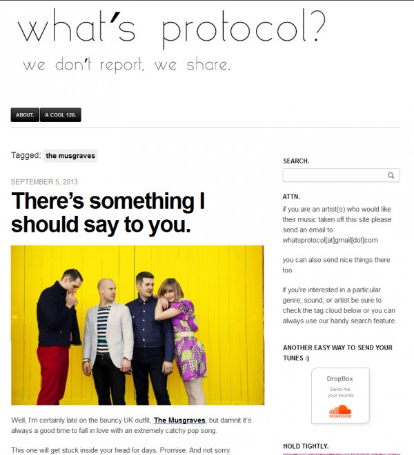 The Musgraves were recently featured on the music blog What’s Protocol. What’s Protocol calls The Musgraves “extremely catchy,” and we couldn’t agree with them more. The blog also featured the track “The Way You Make Me Want You.” Check out feature here.