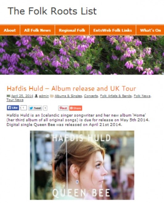 Hafdis Huld has been featured on The Folk Roots List UK! The publication praised Hafdis for her reputation as one of the most entertaining live performers out there, and her beautifully stripped-down sound. Here’s a snippet of what they had to say: