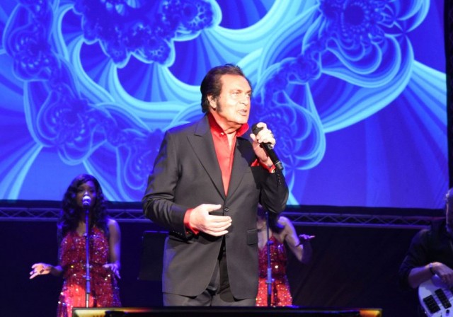 The vibrations were romantic as Engelbert Humperdinck came on stage wearing a black suit over a brilliant red satin long sleeved shirt, with sparkling diamond cuff links and buttons closed up tight around his neck, before a packed audience at his Monday night show in the Sherover Hall at the Jerusalem Theater. (Don’t worry ladies, he eventually took off the coat and showed us his chest.) Prepping the packed audience, his six-piece band and two sexy go-go dancers in red sequined mini-dresses sang a short interlude, while a black and white 1960s television clip of Dean Martin introducing the then young Engelbert, which aired on the The Dean Martin Show, set the tone for his worldwide ‘The 50th Anniversary Tour.’ Israel is his 10th stop.